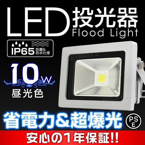 - 即納! LED投光器 100v 10w 昼光色100w相当 PSE取得済 3mコード付