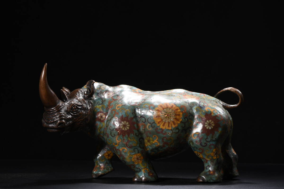 - 唐物 仏像 清時代 古銅 銅彫 景泰藍犀牛擺件仏教古美術 廃寺旧蔵 廃寺買出品 供養品き時代物 古置物 中国古玩 骨董品 旧家蔵出し