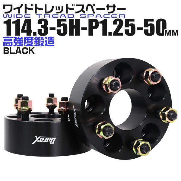 > Durax正規品 ワイドトレッドスペーサー 50mm 114.3-5H-P1.25 ナット付 黒 1F 5穴 日産 スズキ スバル 2枚セット ホイールスペーサー