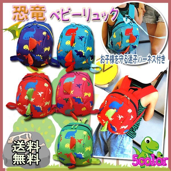 - 【送料無料】恐竜 迷子リュック /恐竜リュック ベビーリュック 子供用 リード付き ハーネス付き 迷子紐 取り外し可能 飛び出し防止