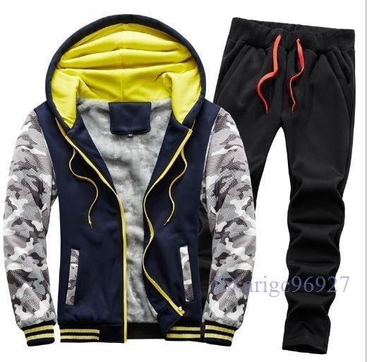 > E409★スウェットメンズ 厚手 スエット ルームウェア スポーツ 上下セット カジュアル 秋冬防寒 裏起毛 ジャージフード付き大きいサ