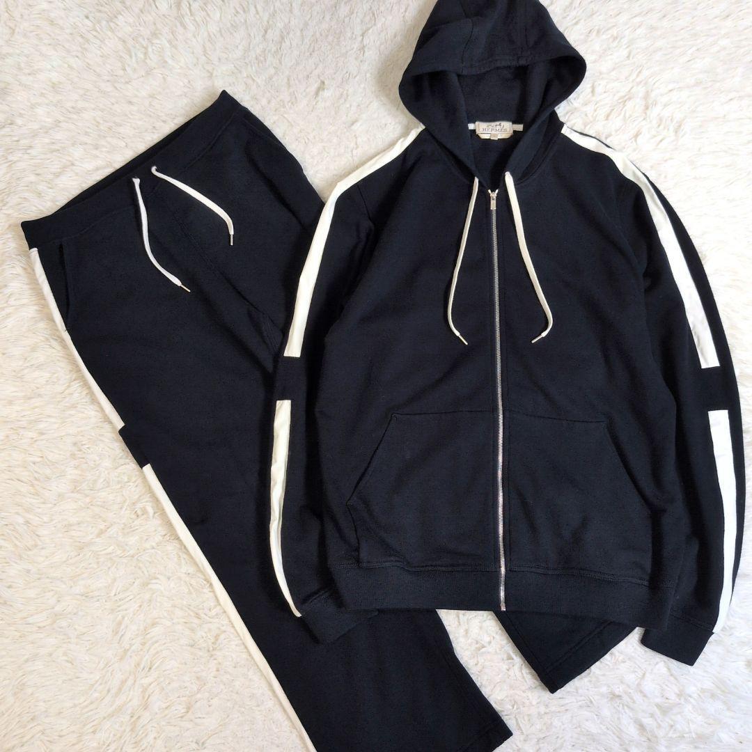 > 【入手困難品】HERMES エルメス カラーライン パーカー&パンツ セットアップ スウェット メンズ バイカラー エルメスジャポン ネイビー