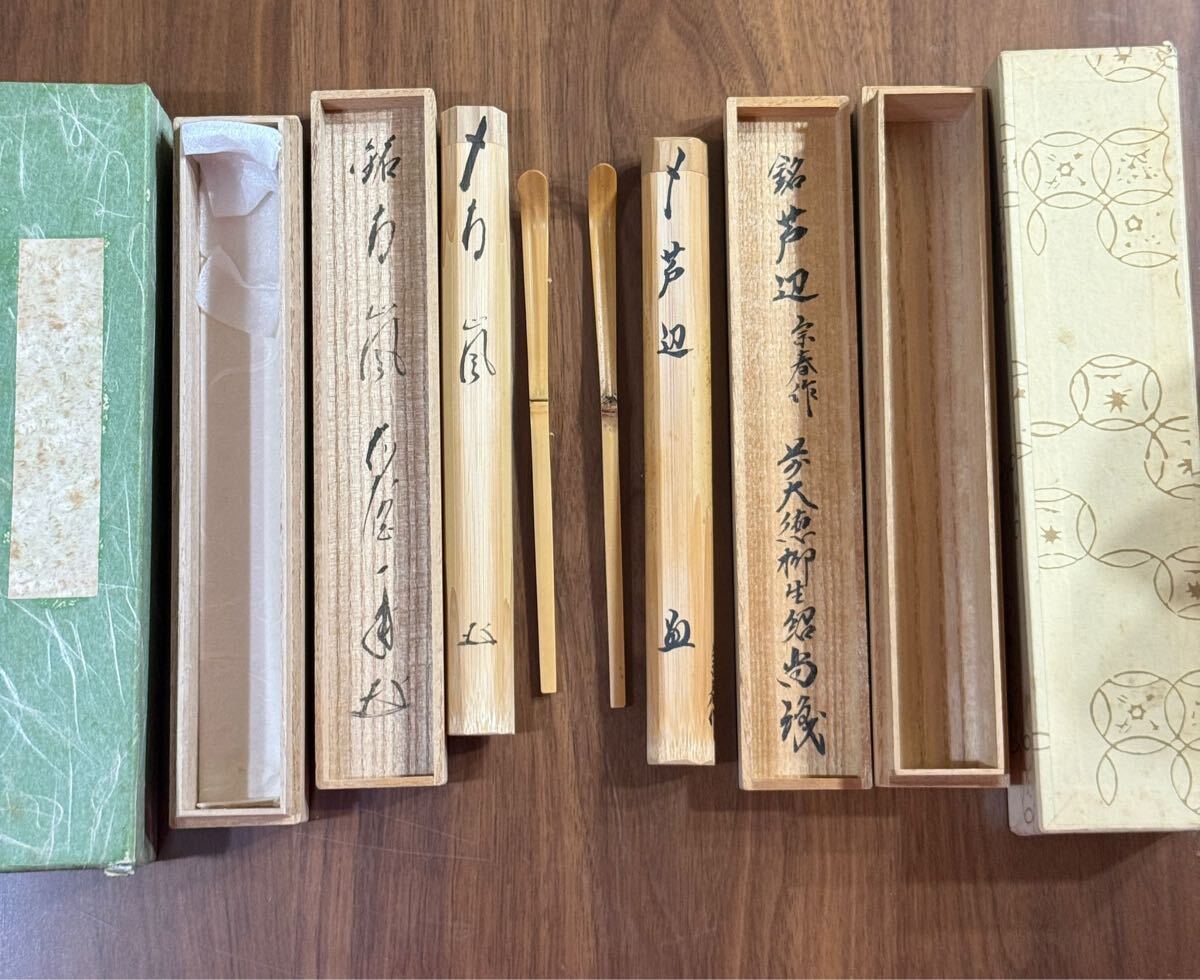 - 【茶道具】古竹茶杓 2本組「青嵐」「芦辺」橋本紹尚禅師命銘/桐箱・外箱・由来