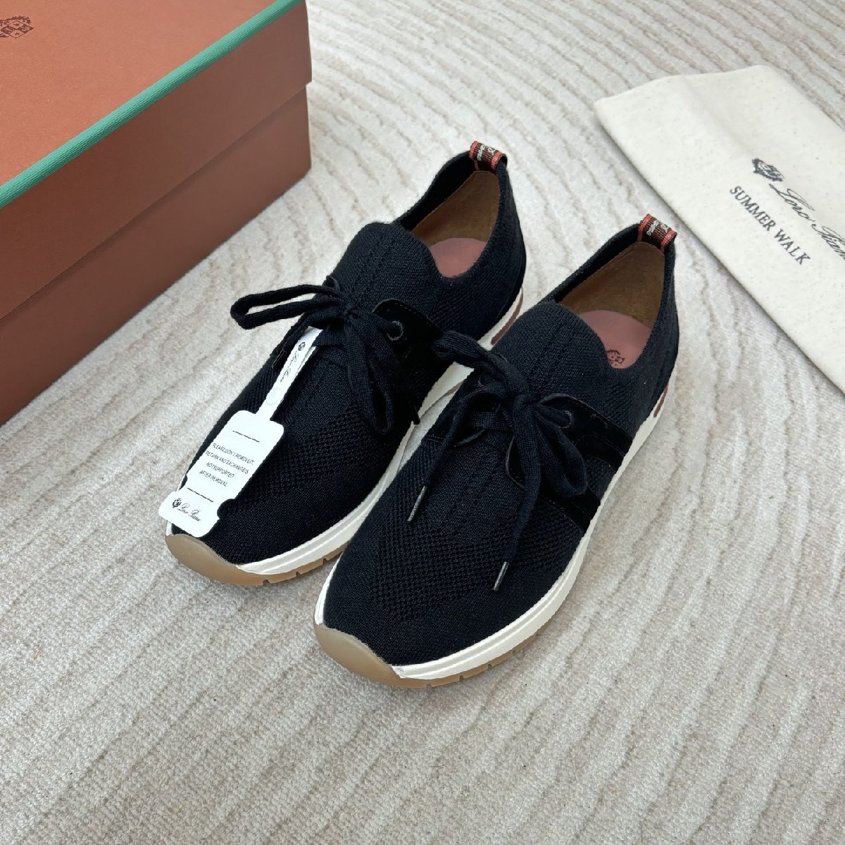 > ブラック23.5cm★送料無料★ロロピアーナ Loro Piana レディースFlexy Active メッシュニットスニーカー、ウールニット&レザー素材