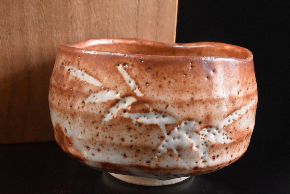 - 【雲】某有名資産家買取品 志野 赤釉抹茶碗 在銘 箱付 古美術品(茶道具) F8012