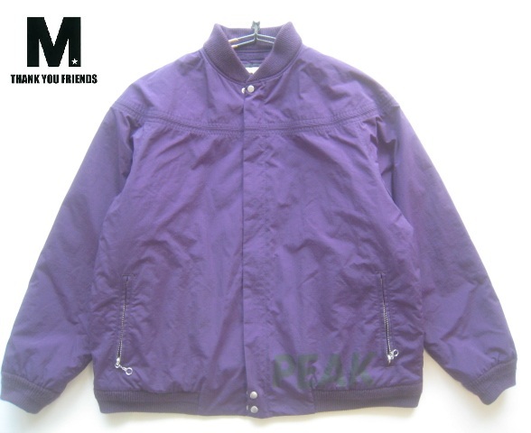 > 美品日本製!!エム M THANK YOU FRIENDS*PEAK POINTプリント 中綿入りナイロンZIPジャケット・スタジャン L 紫 海上がりに着たい