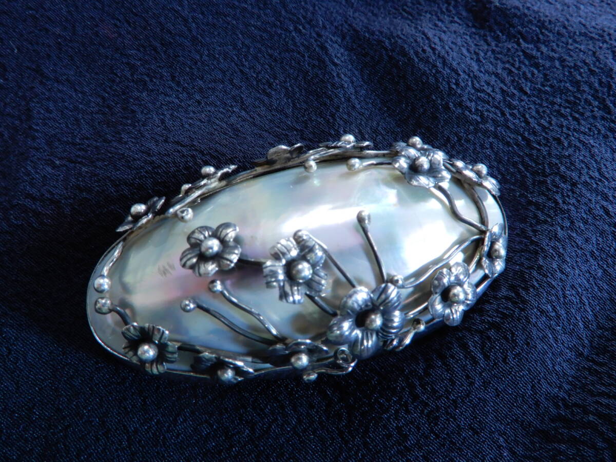 - <銀の斧>銀製・925刻印・SILVER・マベパールの帯留め・存在感のある帯留・約32.4×61.7×15.8mm