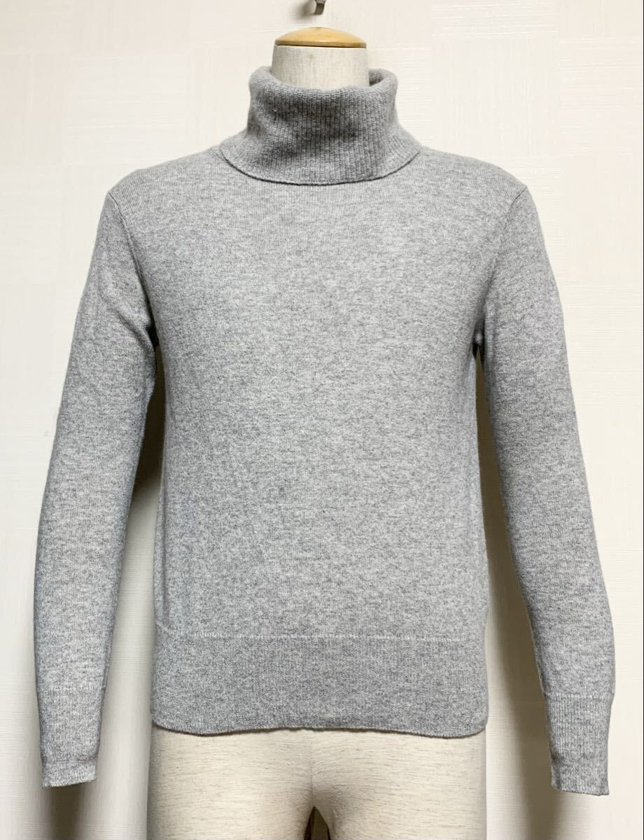 > 美品:UNIQLO(ユニクロ).100% カシミヤ タートルネック ニット M(レディース/グレー/セーター/ハイネック/肩44幅47丈59/肌触り 抜群です)