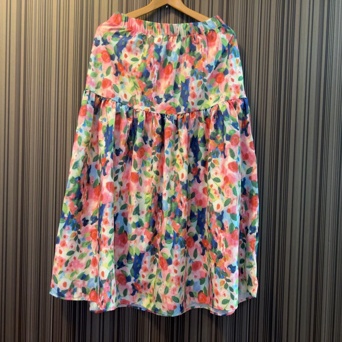- 【美品】花柄スカート★ロングスカート Lサイズ 総柄 ピンク 青 緑 カラフル ウエストゴム フレアスカート レディース