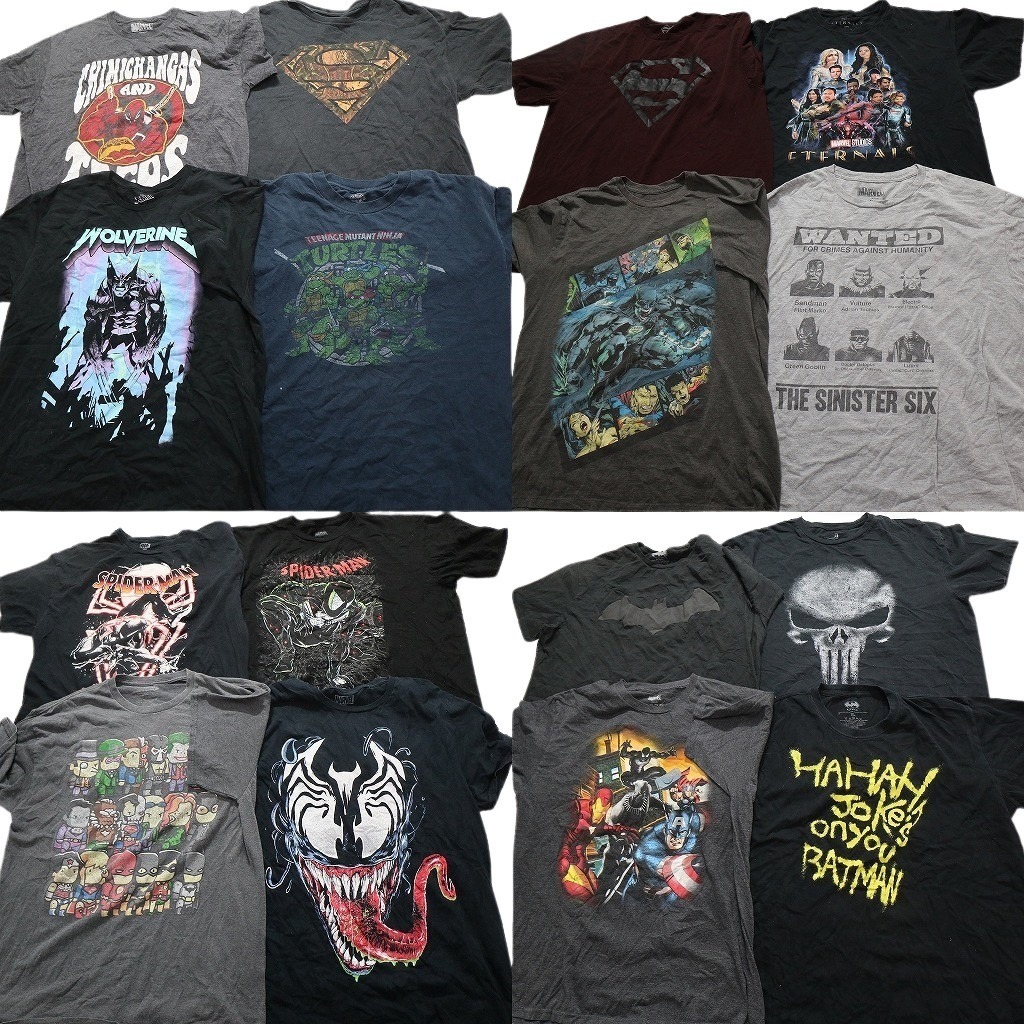 > 古着卸 まとめ売り マーベル DCコミック 半袖Tシャツ 16枚セット (メンズ XL ) スーパーマン ウルヴァリン バットマン 中古 古着 NC3787