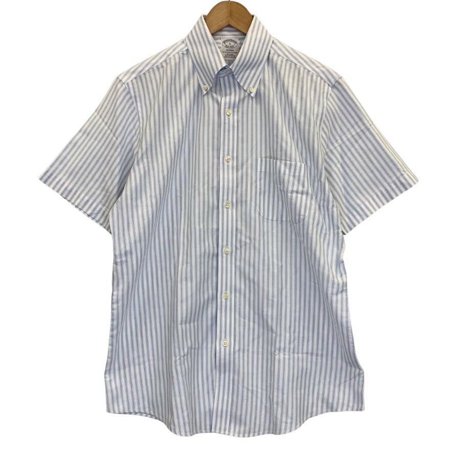 > 美品◆シャツ ブルックスブラザーズ 半袖シャツ ストライプ コットン ボタンダウン ブルー メンズ サイズ15 Brooks Brothers 【AFB30】