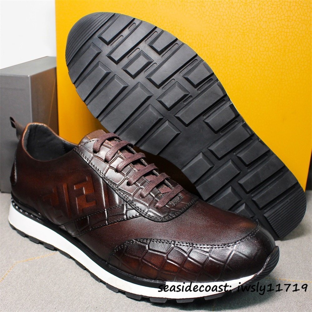 > 定価9万超★スニーカー 高級本革 職人手作り レザーシューズ イタリア ローファー スリッポン メンズ 新品 本革 快適 厚底 ブラウン 26.5cm