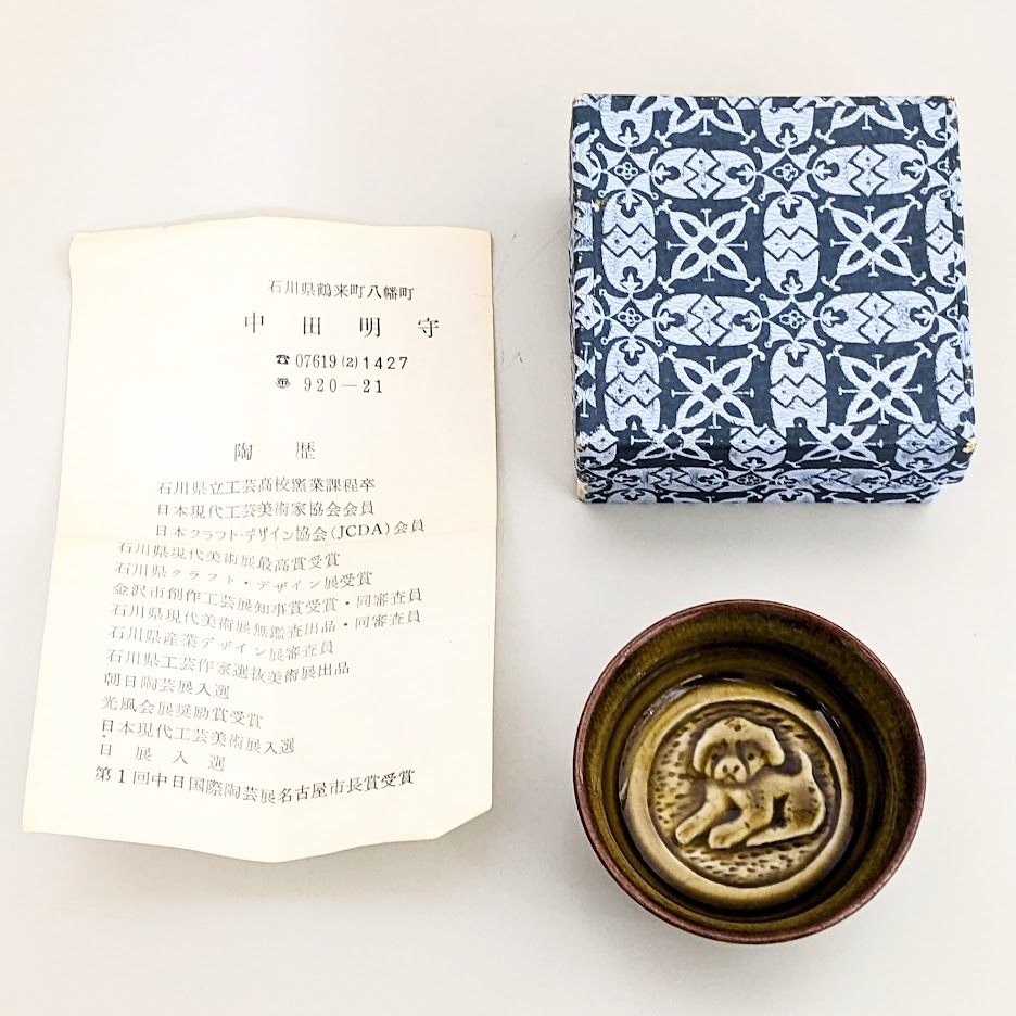 - 【71】1円スタート 中田明守 盃 おちょこ ぐいのみ 犬 食器 陶器 インテリア ヴィンテージ コレクション