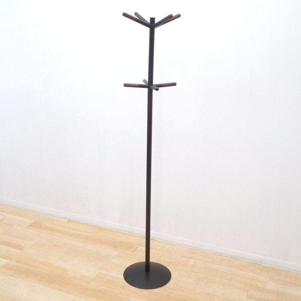 > ポールハンガー ハンガーラック 直径335mm 高さ175cm コートハンガー 木目 ブラック 収納 玄関 応接室 YH15966 中古オフィス家具