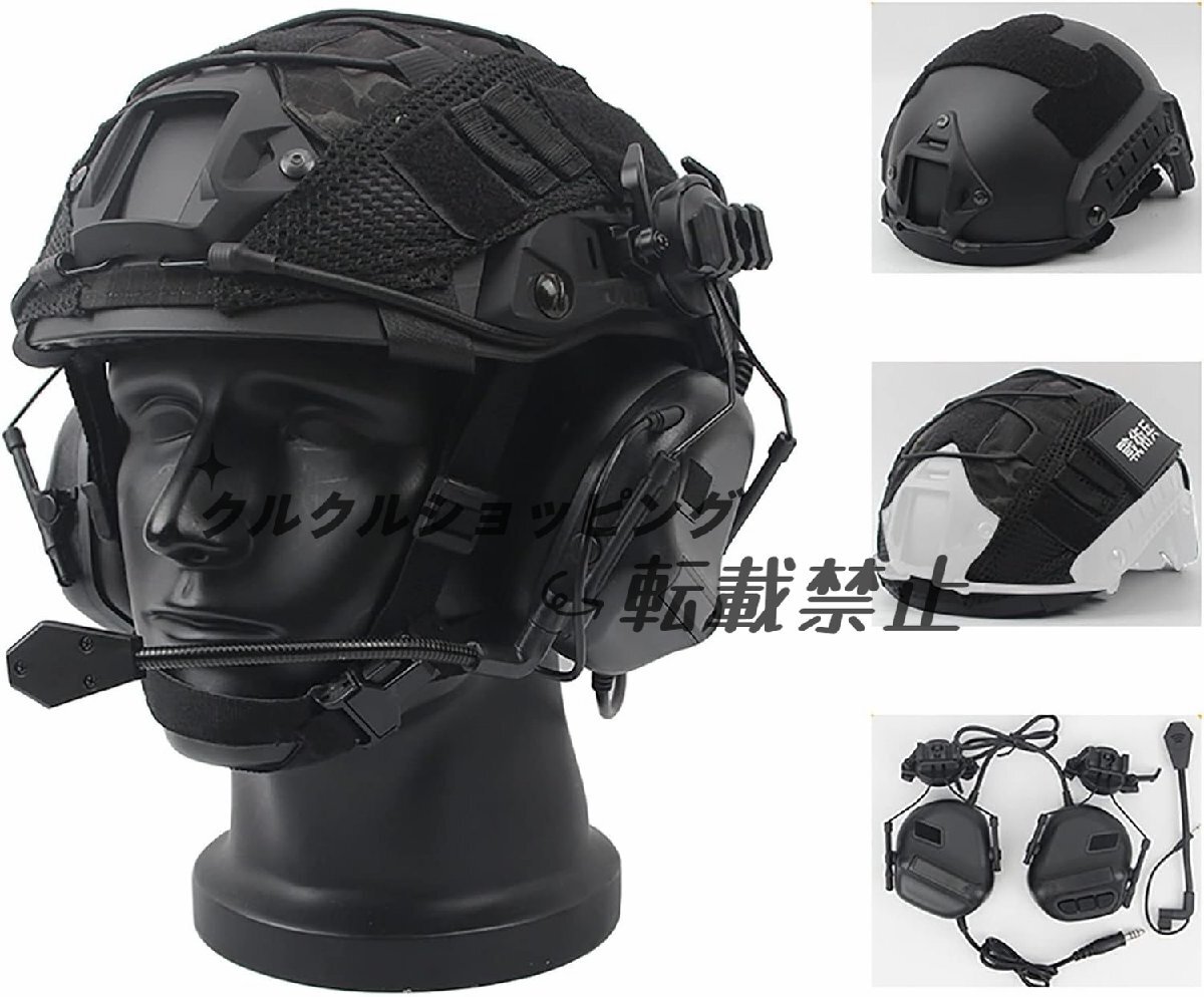 > タクティカル ヘルメット セット、サバゲー ヘルメット カバー、ヘッドフォン (ノイズなし) 付き、CS ゲーム シューティング
