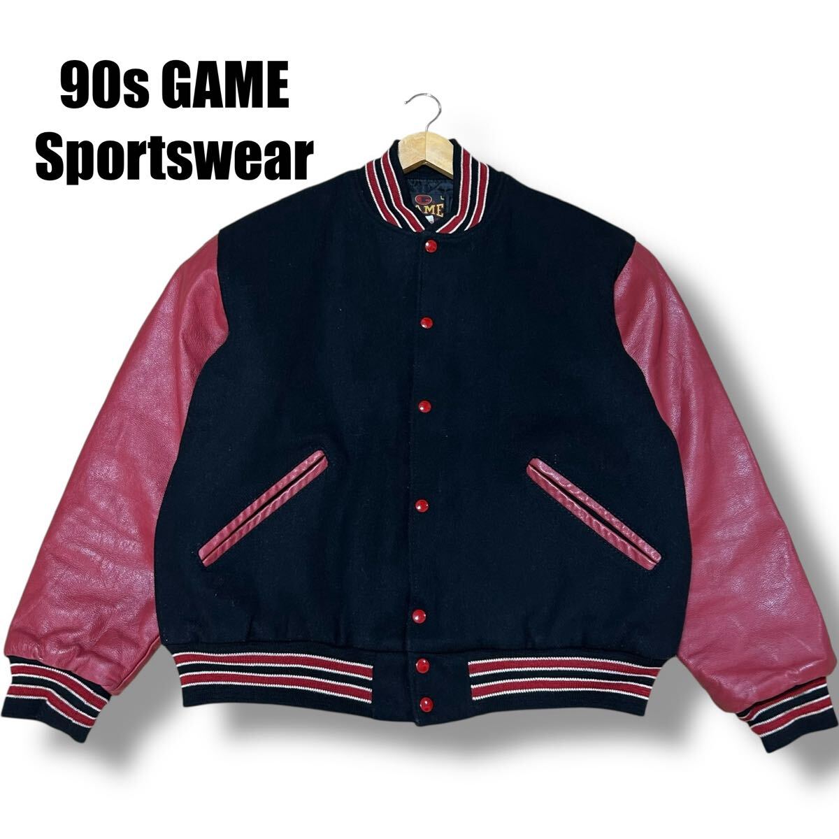 > 90s USA製 GAME Sportswear Lサイズ スタジャン 袖レザー 袖革 ヴィンテージ vintage ゲーム スポーツウェア USA製 Lサイズ メンズ 古着