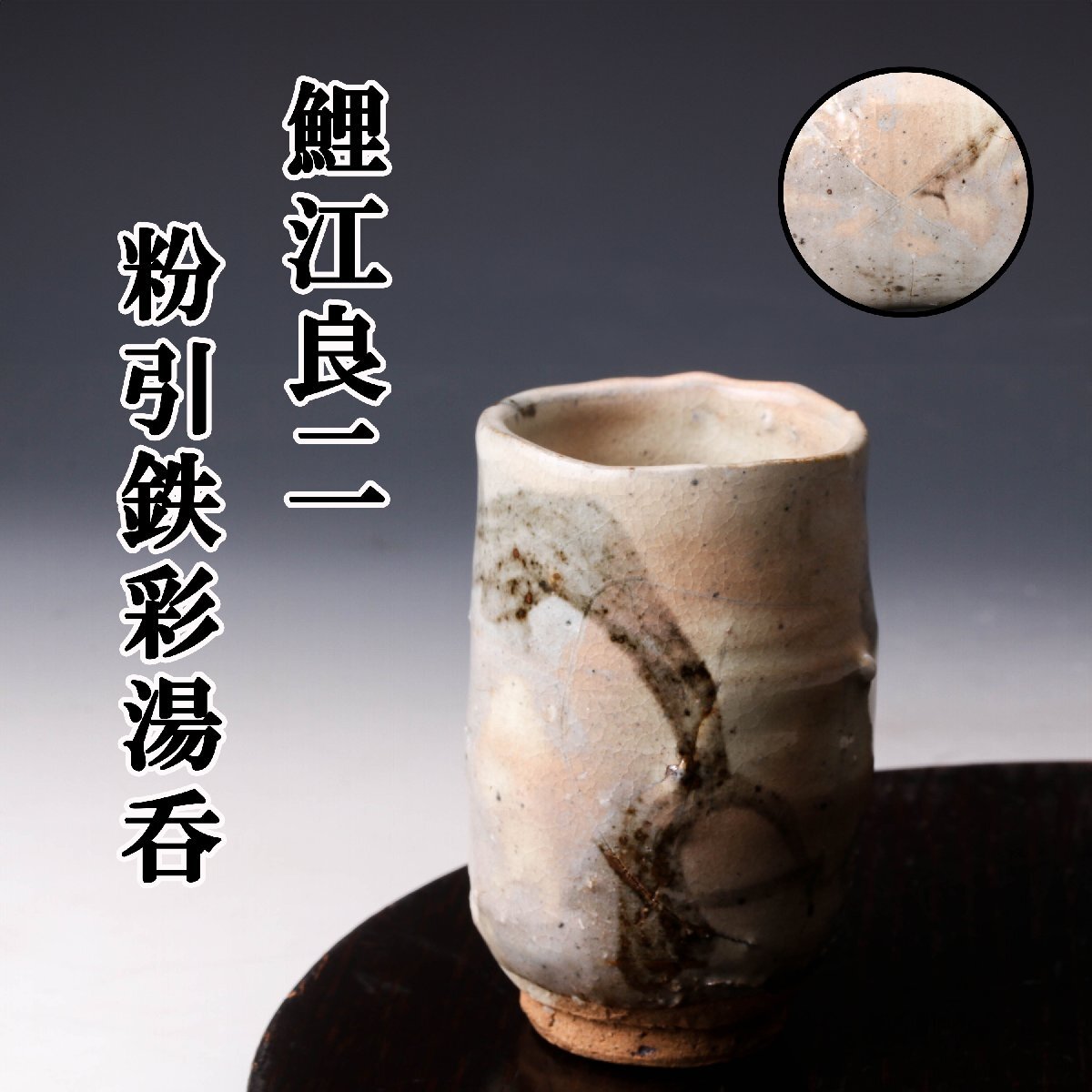 【佳香】鯉江良二 湧き上がる描線 粉引鉄彩湯呑 本物保証