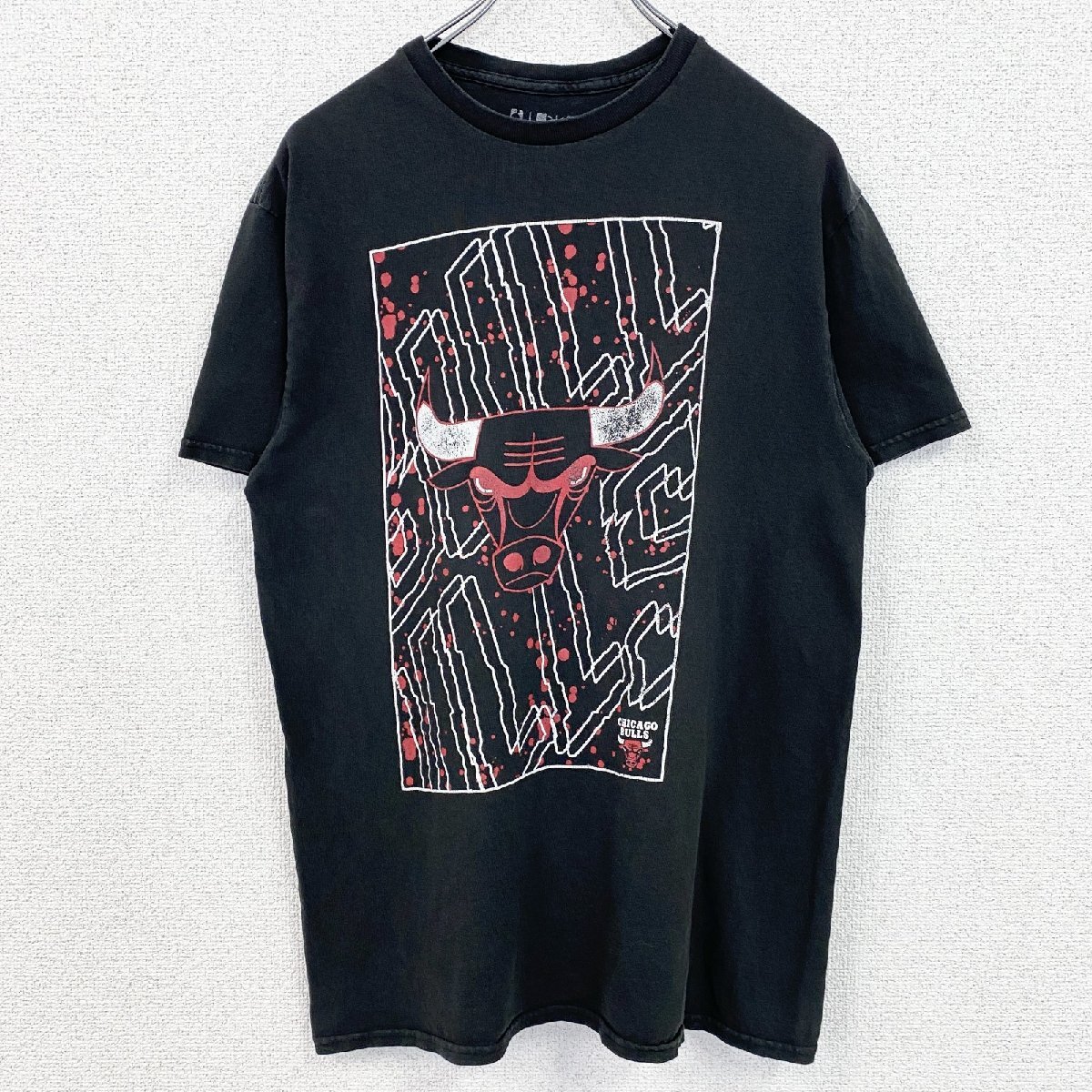 - 古着 used NBA 半袖プリントTシャツ シカゴブルズ バスケットボール クルーネック 黒 ブラック Mサイズ