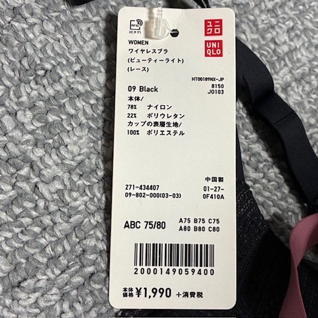 - 2枚セット ユニクロ ワイヤレスブラ レース柄 ABC 75/80