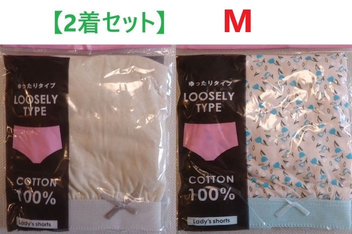 - 【2着セット】M・レディースショーツ 綿100% 「ゆったりタイプ」 股上深め 新品