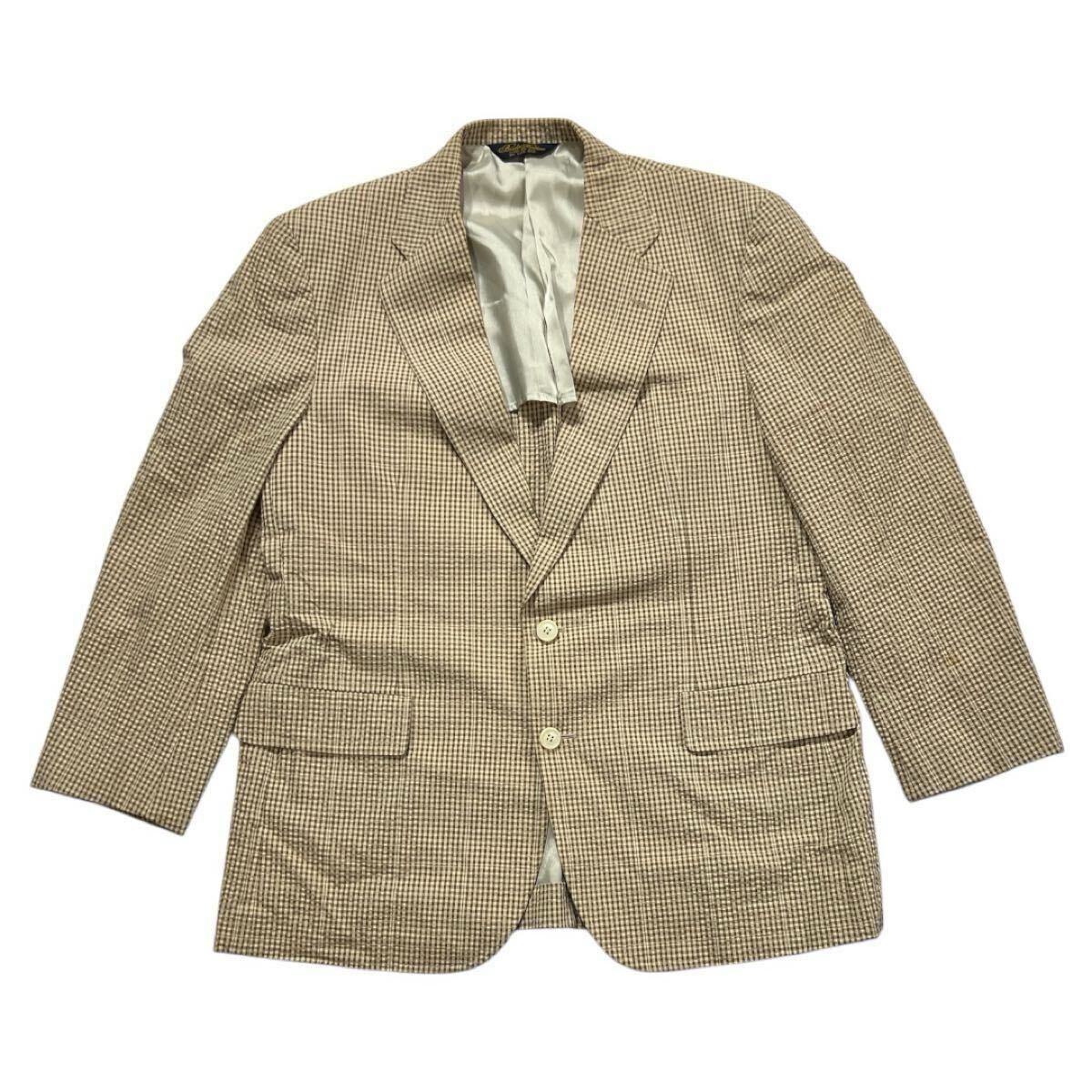 - ■ BROOKS BROTHERS ブルックスブラザーズ ■ ギンガムチェック柄 シアサッカー地 コットン ブレザー ジャケット ベージュ×ブラウン 3