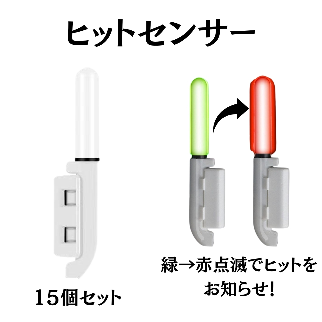 > ヒットセンサー 15個セット 緑→赤 点滅 穂先ライト led 釣り 竿先ライト ケミカルライト 夜釣り ワンタッチ 耐久性 超高輝度 電池別売り
