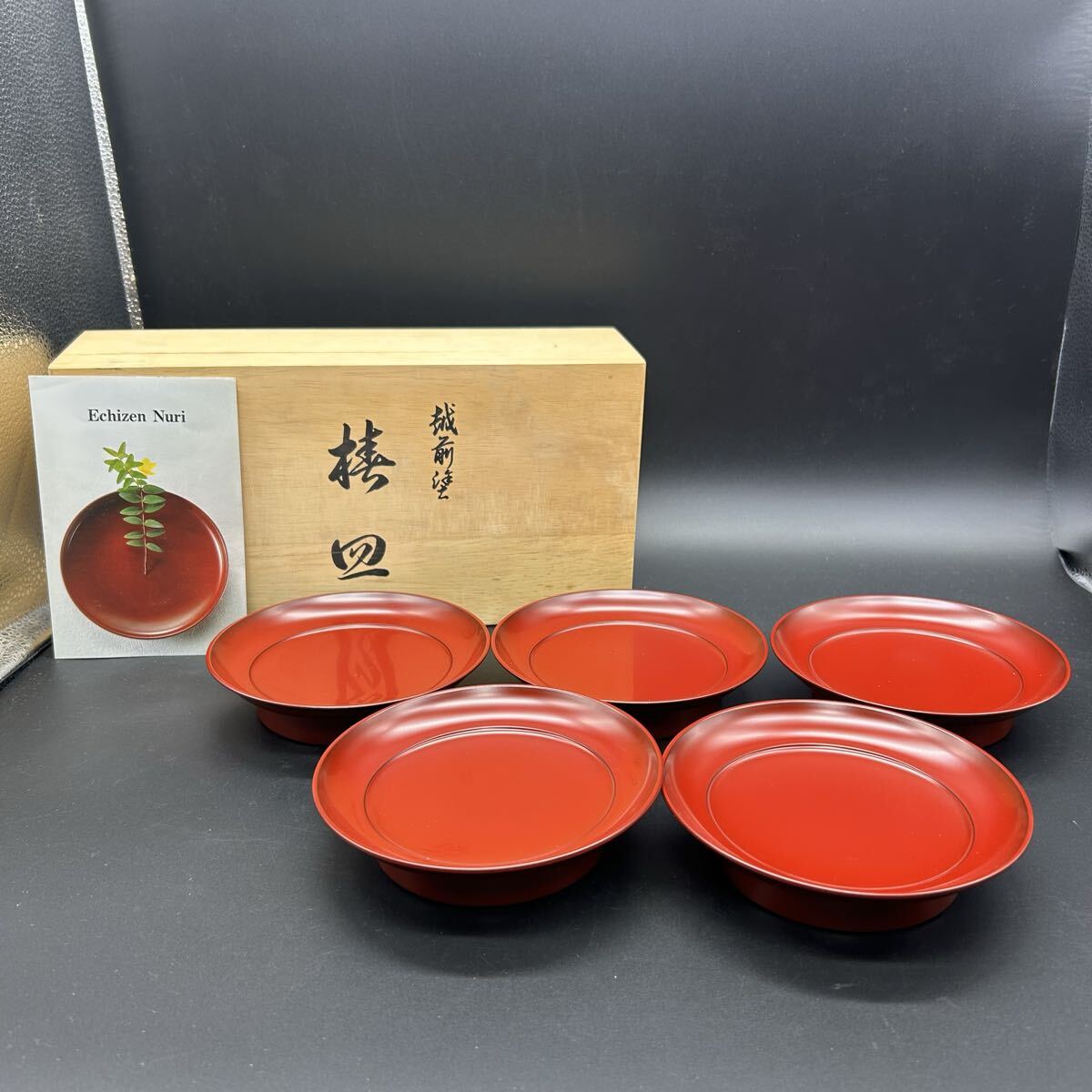 - 越前塗 椿皿 銘々皿 古代朱 うるし塗装 漆器 和食器 オ20