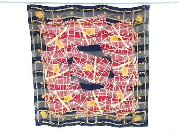 - renoma レノマ シルク100% 総柄 大判 スカーフ ストール ショール レディース メンズ レッド系×ネイビー系 DF2359