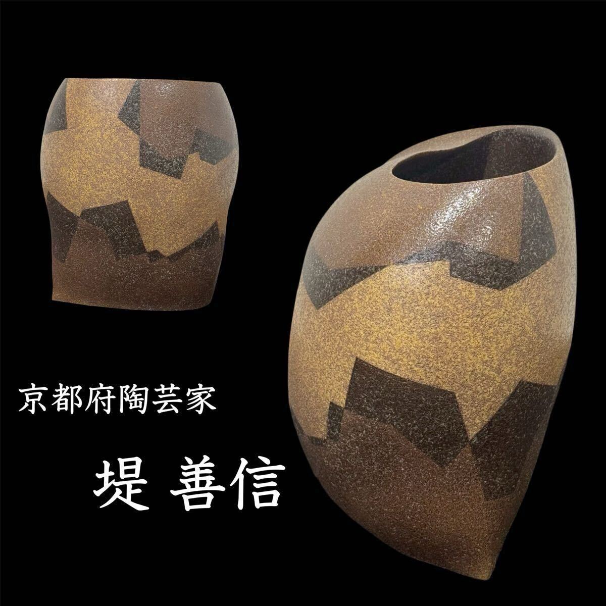 > 堤善信 作 大型作品 象嵌 花瓶 / 蔵出し品 京都府陶芸家 陶器 花瓶 壷 花生 花入 オブジェ 現代アート I320