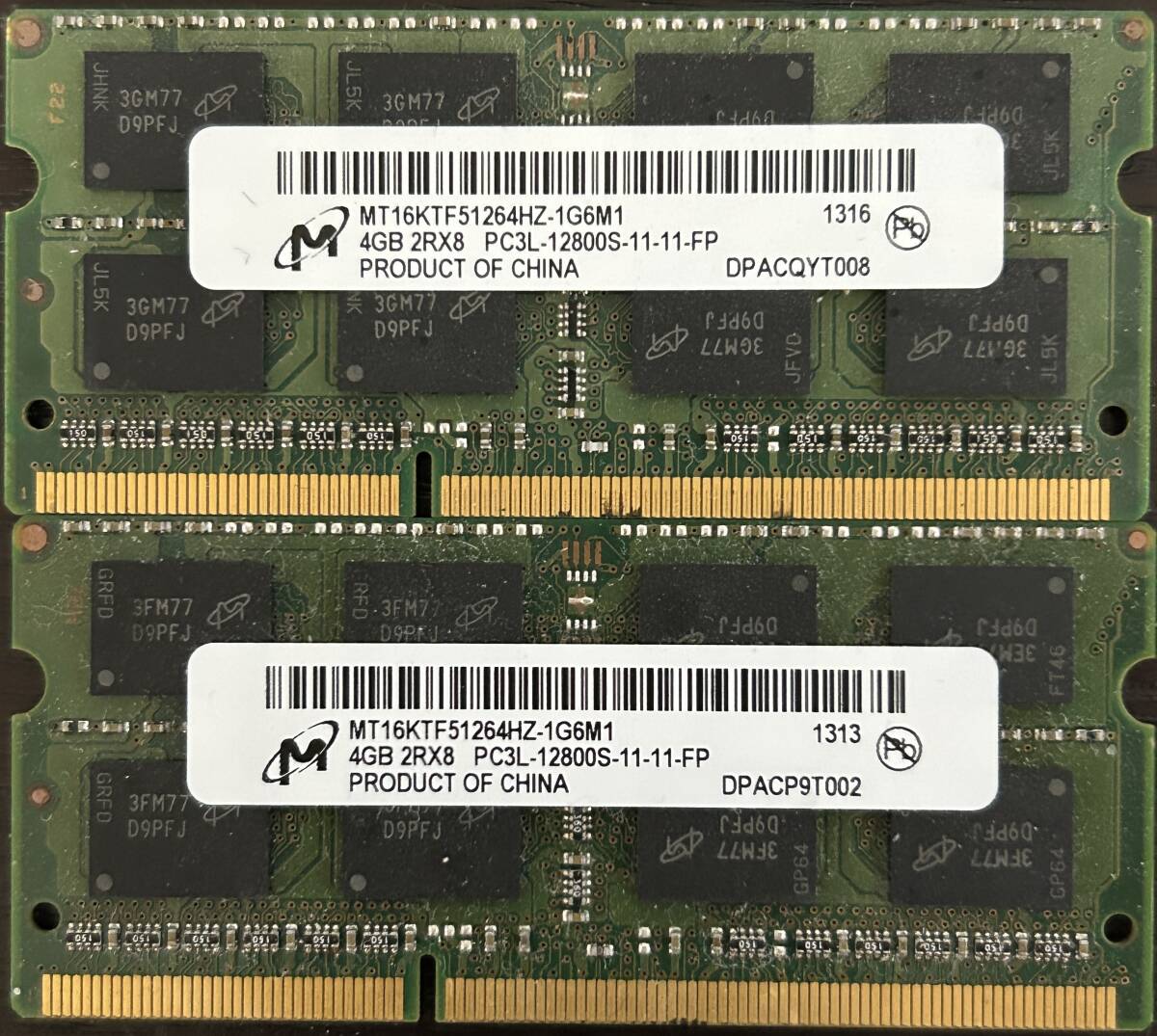 - 即決 動作確認済み Micron マイクロン SO-DIMM 204pin DDR3L PC3L-12800S 4GB×2枚1.35V低電圧対応 1.5V対応 ノートパソコン用 811