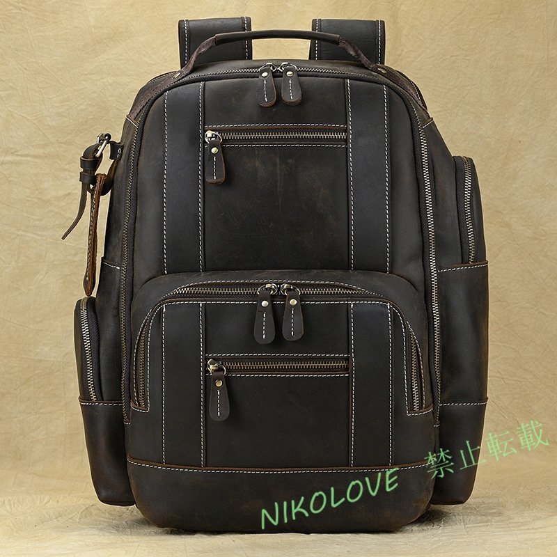 - ☆新品美品 カジュアル兼用 サック メンズ レザー バックパック レトロ通勤通学 リュック 好評 アウトドア 14インチ コーヒー