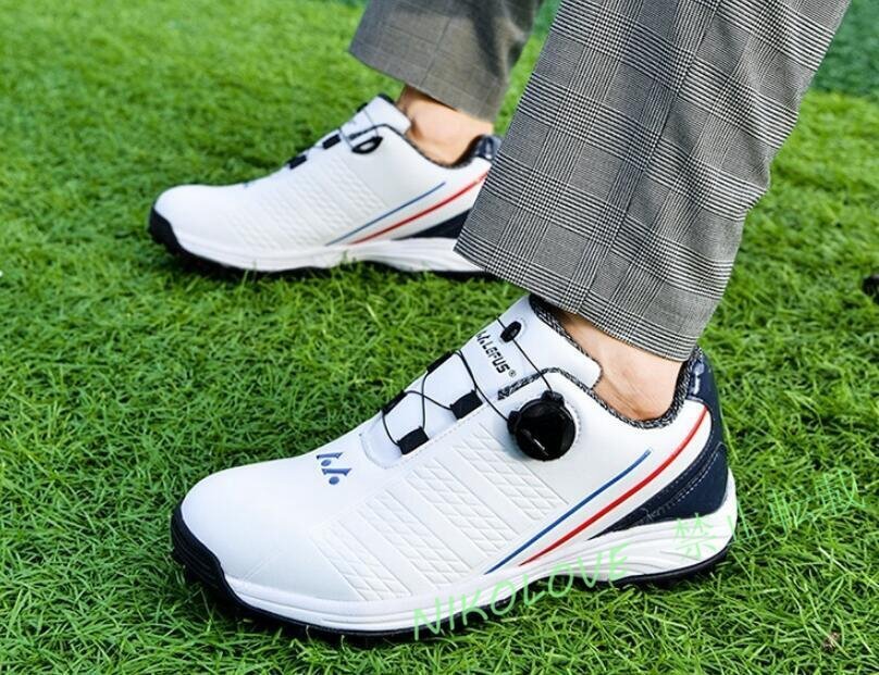 > ☆新品ゴルフシューズ メンズ ダイヤル式 4E 幅広い 男女兼用 フィット感 軽量 運動靴 スポーツシューズ 防水 防滑 耐磨 弾力性 白赤