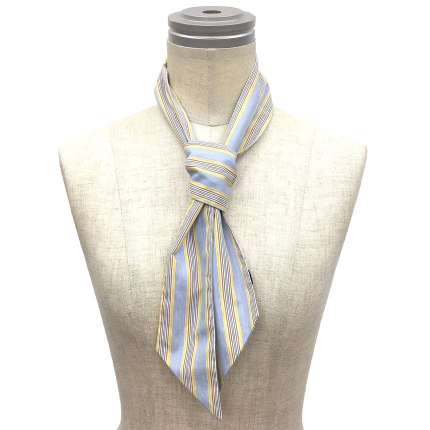 > 全国送料無料 miu miu ミュウミュウ リボンスカーフ ツイリー コットンスカーフ タイスカーフ ストライプ コットン ブルー系 美品 aq11494