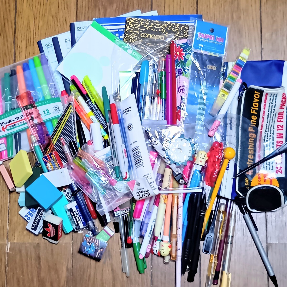 - 大量 文具 筆記用具 マーカー/シャーペン/ ペンケース/消しゴム/ノート/三角定規分度器 等