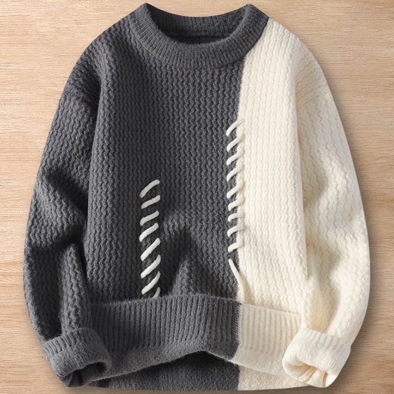 - Y271-L グレー 新品DCKMANY ウール混 セーター ラウンドネック 編みニット 配色 厚手 暖かい 長袖 メンズ プルオーバー 秋冬トップス