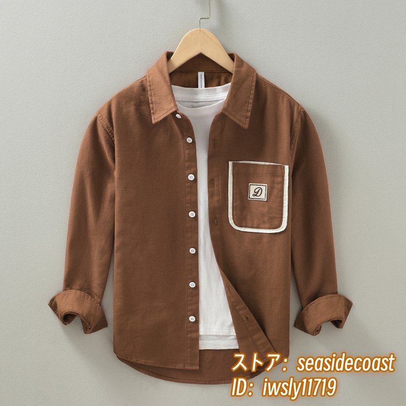 > 極美品★長袖シャツ メンズシャツ 柔らか ワイシャツ ハイセンス 春秋シャツ 切替 Tシャツ カジュアル 心地良し お洒落 三色 ブラウン XL