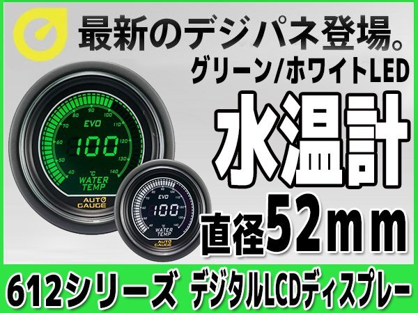 > 大人気メーター オートゲージ 水温計 52Φ 612 EVO デジタルLCDディスプレイ オープニングセレモニー ホワイト グリーン 52mm