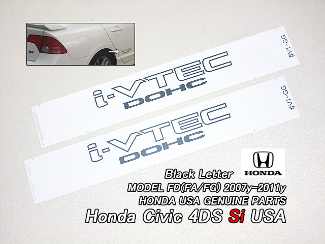 - シビックFD【HONDA】ホンダCIVICセダンSi純正USステッカー左右i-VTEC.DOHC黒文字2点/USDM北米仕様4ドアFAブラックUSA海外TypeRタイプR
