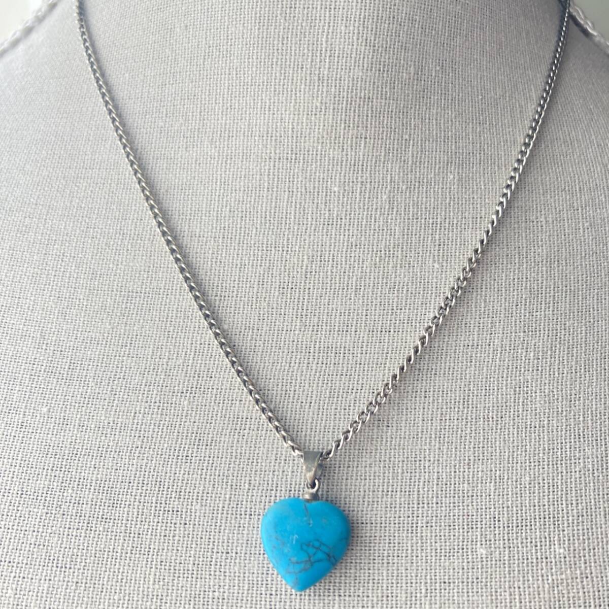 - ヴィンテージネックレス ターコイズブルー ハート型ストーン シルバートーン☆Vintage jewelry accessoriesF0350