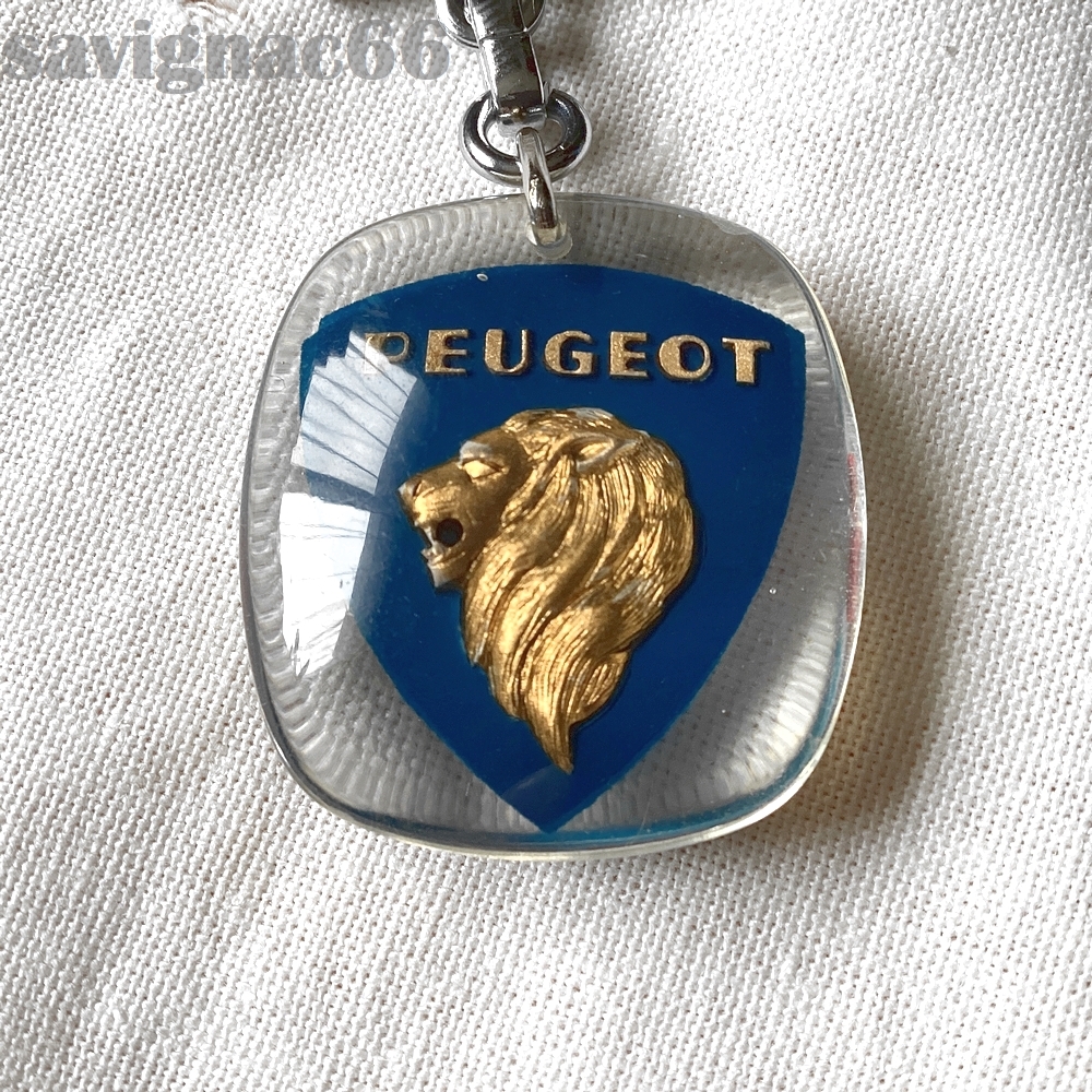- 60年代 フレンチキーホルダー ブルボン PEUGEOT プジョー 青 ESSO エッソ エンブレム 旧ロゴ ★ 60s フランス vintage 旧車 当時物 企業物