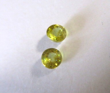 イエローのスフェーンの1ペアです。赤やグリーンのファイアーがキラキラしています。透明感とテリがあります。非加熱。