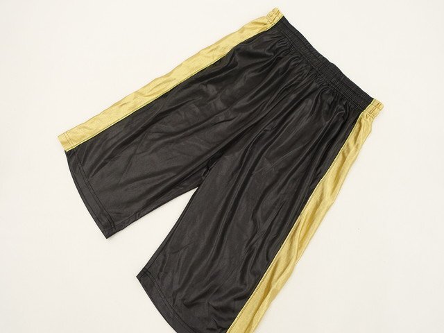 > メンズ美品 ゲットー GHETTO ノータックハーフパンツ スポーツ L ブラック地 ゴールド 【メール便可】