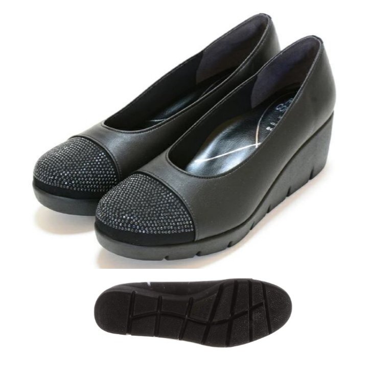 - 即決 23.0 FIRST CONTACT 39606 黒 ストレッチ 日本製 婦人 レディース 冠婚葬祭 お葬式 ウエーブ ウエッジ ソール シューズ パンプス