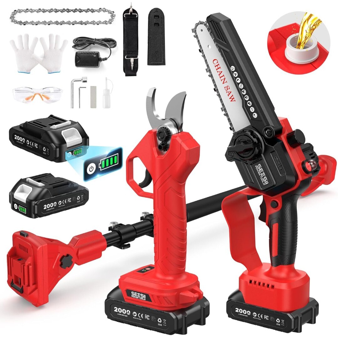 - 高枝切り鋏 電動 チェーンソー 剪定鋏 コードレス 1台4役 軽量 伸縮 充電式 剪定バサミ 伸縮ポール たかえだ