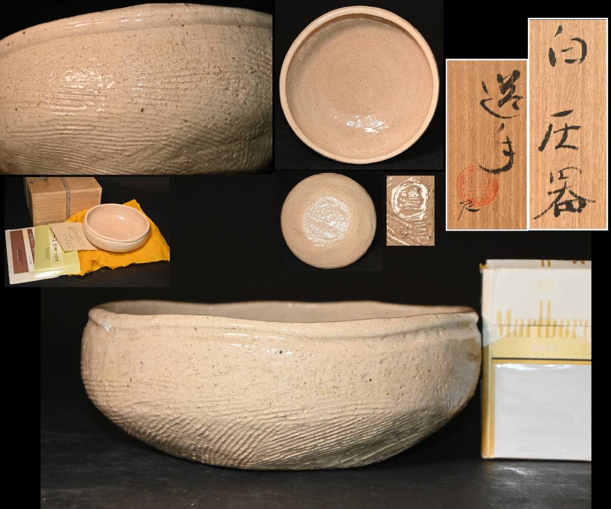 > 真贋保証■四代 中村道年 (尼)作■ 白灰器 共箱・共布・栞付 尼焼道年 楽焼 八事窯 名古屋生 茶道具 風炉 二代中村道年に師事