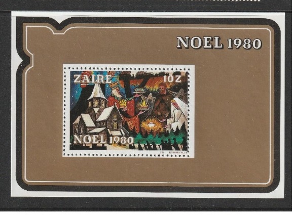 - (ザイール)1980年クリスマス小型シート、スコット評価5.5ドル(海外より発送、説明欄参照)