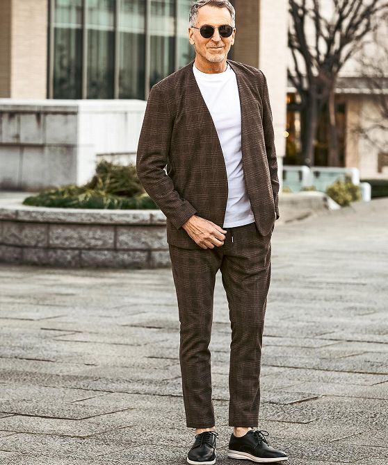 > 1PIU1UGUALE3 RELAX ウノピゥウノウグァーレトレ セットアップ メンズ スーツ 上下 セット テーラード チェック ジャケット スラックス M