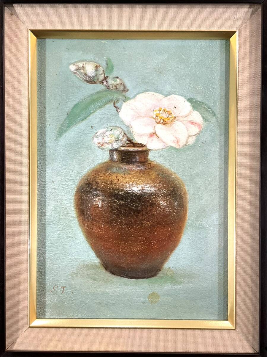 真作■油彩■多田修二■『つばき』■美しい逸品■額付絵画