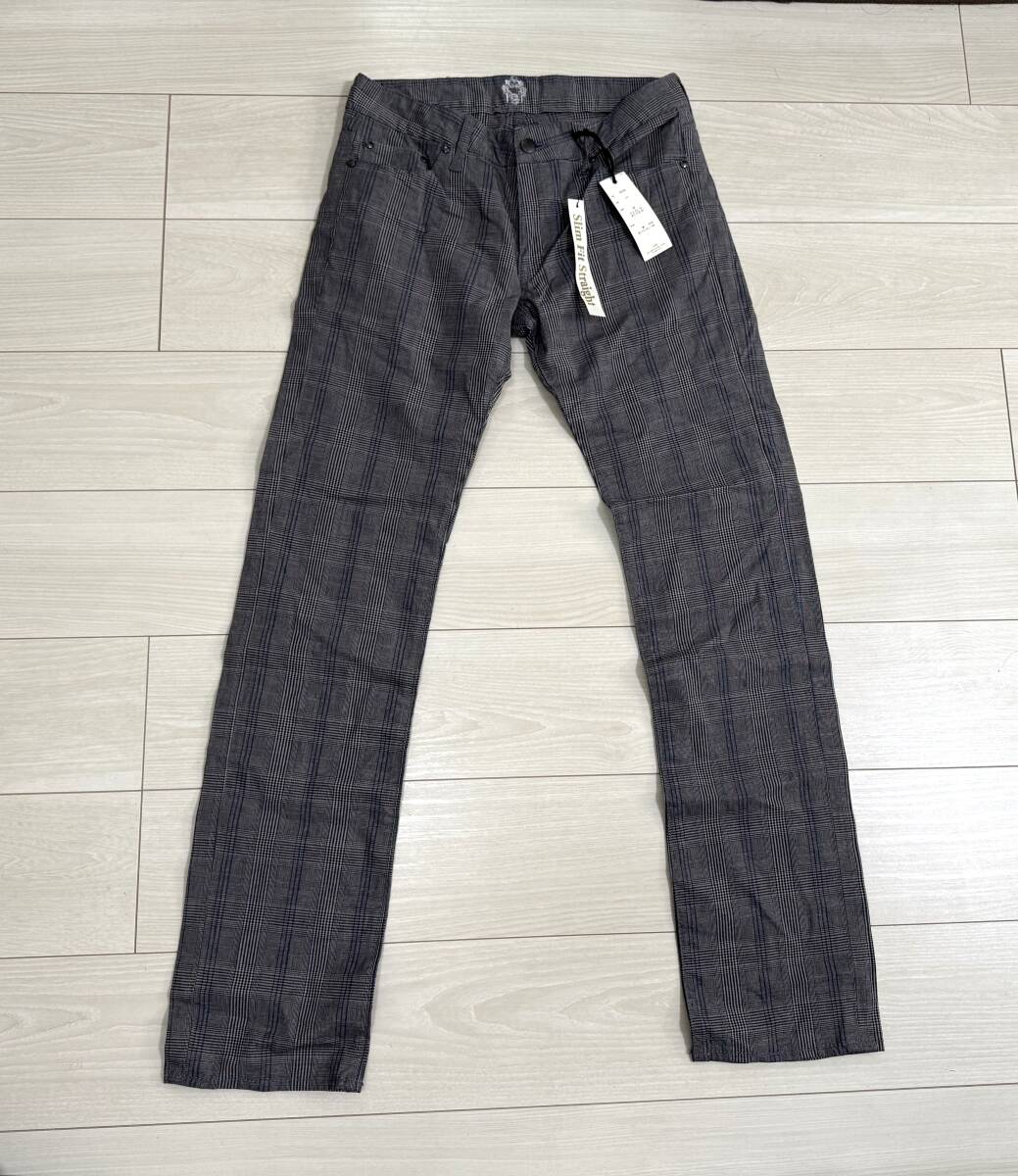 - タグ付き/未使用★ROOT THREE ルートスリー スリムフィットストレートパンツ M チェック柄 グレー★