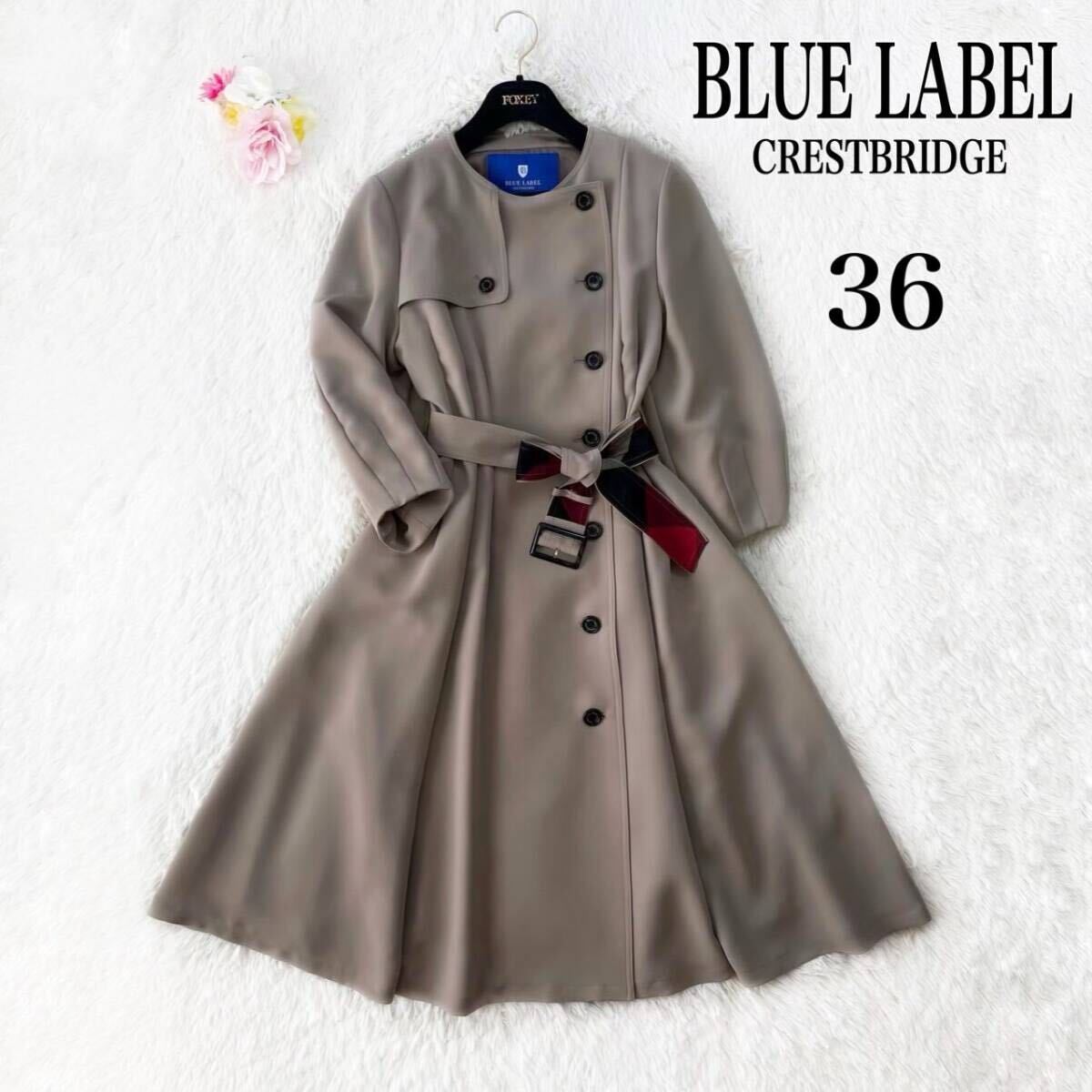 > ブルーレーベル クレストブリッジ EZUMi ダブルクロス ジョーゼット ドレス コート トレンチ 未使用 タグ付き チェック ベージュ 36 薄手